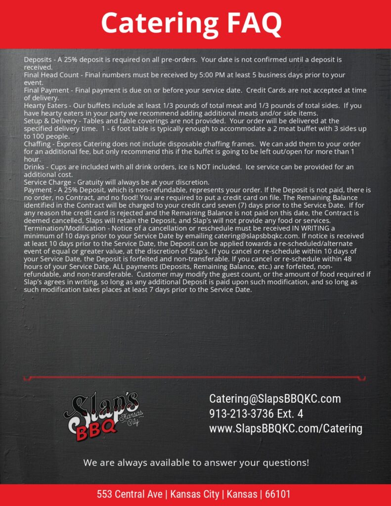 Slap's offers full-service catering for weddings, rehearsal dinners, graduations, corporate gatherings, and many other events. We take the hassle out of feeding your guests with the best food, prompt service, and the most respectful and seasoned staff in the industry.